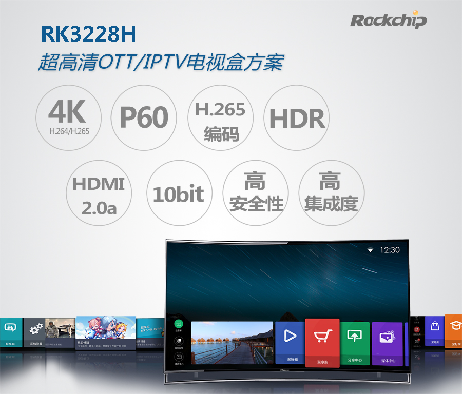 瑞芯微Rockchip作為中國聯(lián)通的重要合作伙伴,將在本次秋交會期間推出高性能運營商盒子方案RK3228H。方案具有四大亮點: