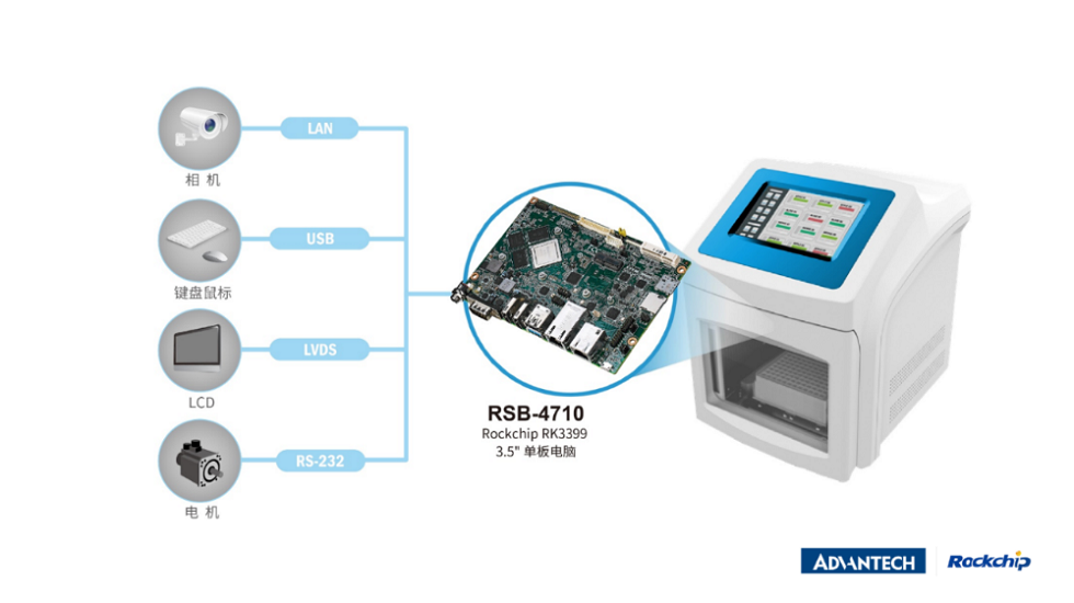 目前,搭載RK3399的研華RSB-4710RSB-3710單板電腦均已量產(chǎn)并落地。在常態(tài)化疫情防控的今天,大型PCR工作站、醫(yī)用PCR設(shè)備以及小型一體式PCR設(shè)備針對不同使用場景都得到了廣泛的應(yīng)用。