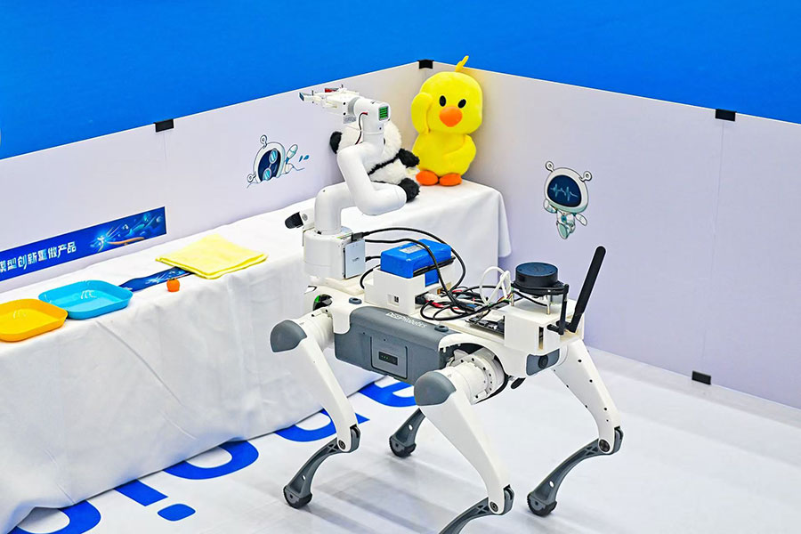 機器狗+機械臂輕量級服務機器人:基于RK3588運行ROS2實現(xiàn)機械臂與機器狗的控制,使用端側(cè)RK1820部署的Qwen LLM與VLM進行任務的規(guī)劃與編排,具備自主導航與精準操作的一體化能力,支持復雜環(huán)境下實現(xiàn)物體精準抓取與搬運任務,適用于巡檢、安防等工業(yè)場景