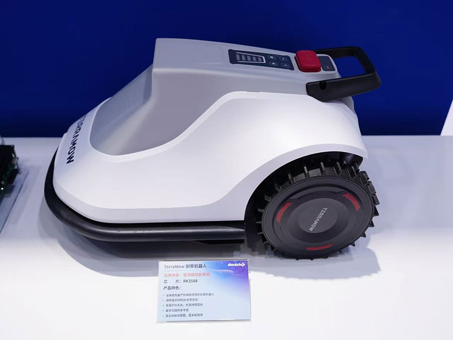 智能割草機:純視覺導航割草機器人,搭載高精度3D感知AI視覺系統(tǒng),無需RTK天線,無需物理圍線,真實AI自動建圖,實現(xiàn)厘米級避障,展示了瑞芯微在消費級與專業(yè)級機器人市場的廣泛賦能