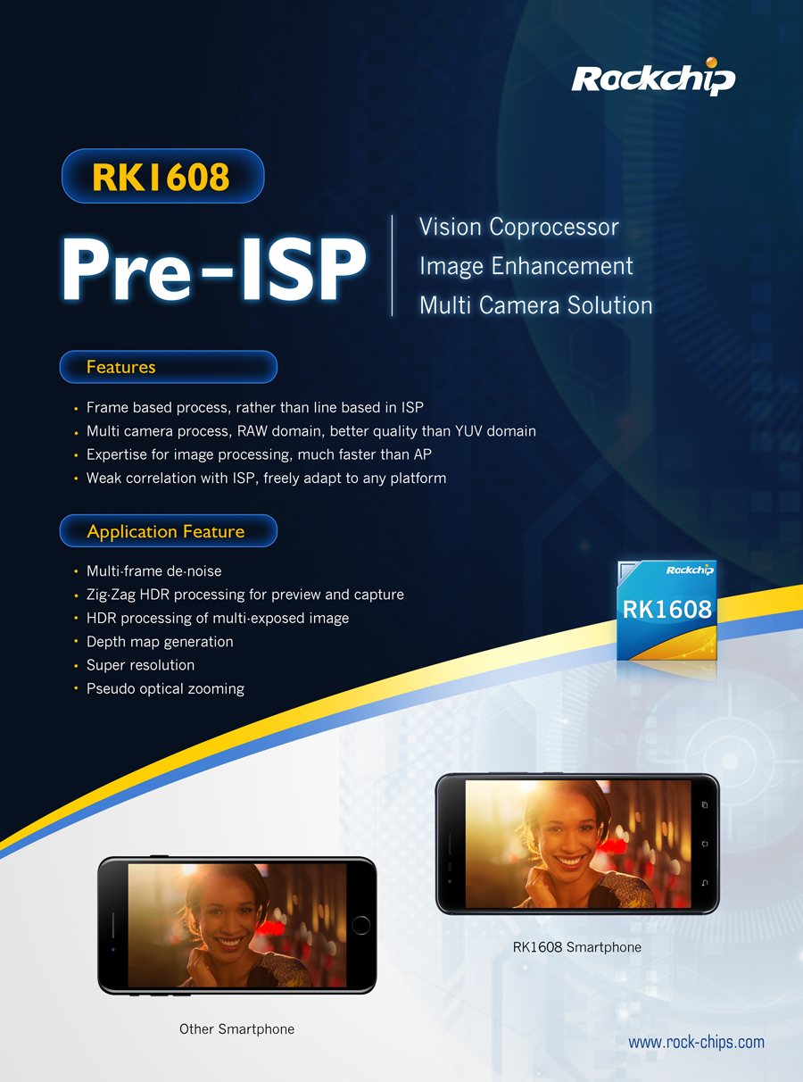 • Amazing back lighting/night view photography experience! Vision coprocessor RK1608 launched during MWC 2017